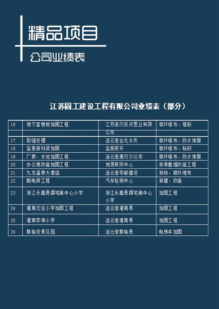 2018年江蘇固工建設(shè)工程有限公司業(yè)績(jī)表