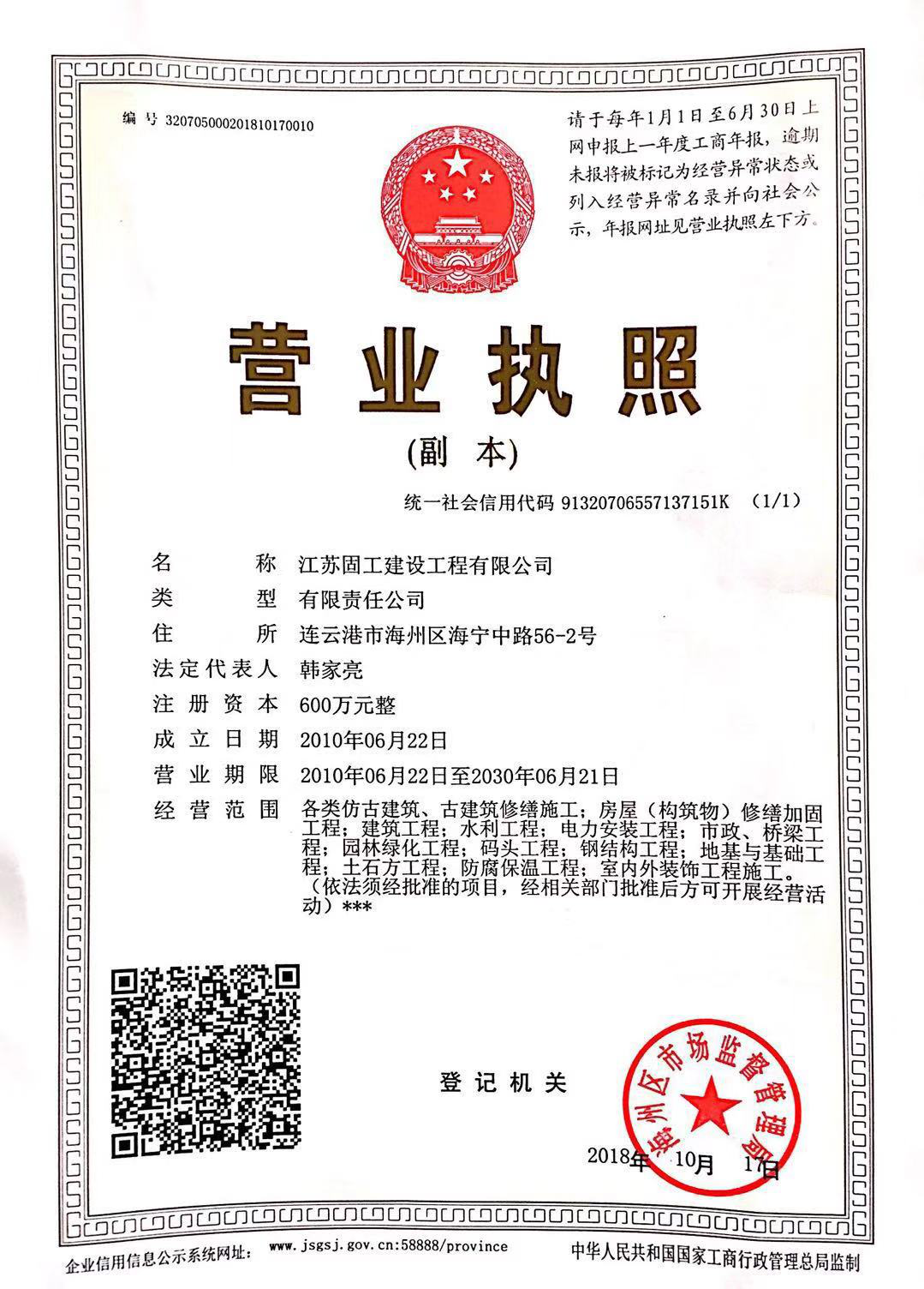 江蘇固工建設(shè)工程有限公司于2010年06月成立,擁有特種工程(結(jié)構(gòu)補(bǔ)強(qiáng))專業(yè)承包資質(zhì)和古建筑專業(yè)承包三級(jí)資質(zhì),公司注冊(cè)資金600萬(wàn)元,主營(yíng)業(yè)務(wù)是以建筑(構(gòu)筑物)抗震加固工程、防水工程、仿古建筑施工以及古建筑修繕為主的建筑施工企業(yè),另公司投資100余萬(wàn)元發(fā)展混凝土噴漿為輔助產(chǎn)業(yè),擁有與之相匹配的專業(yè)技術(shù)人員和機(jī)械設(shè)備。