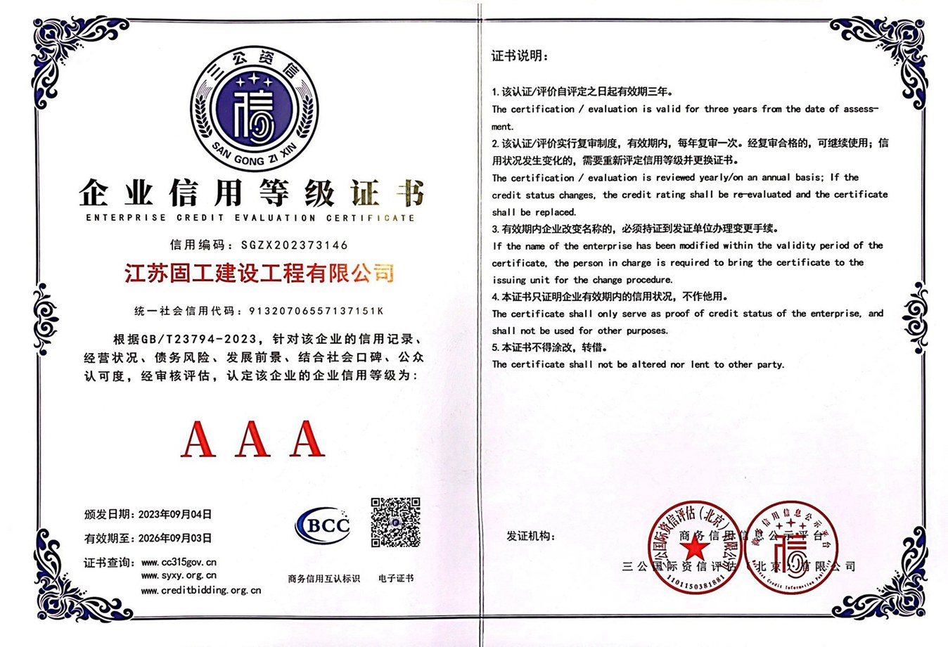 企業(yè)信用等級(jí)證書(shū)